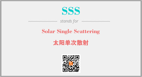上述内容是“Solar Single Scattering”作为“SSS”的缩写,解释为“太阳单次散射”时的信息,以及英文缩略词SSS所代表的英文单词,其对应的中文拼音、详细解释以及在英文中的流行度和相关分类、应用领域及应用示例等。