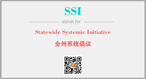 英文缩略词“SSI”经常作为“Statewide Systemic Initiative”的英文缩写来使用,中文表示:“全州系统倡议”。本文将详细介绍英文缩写词SSI所代表英文单词,其对应的中文拼音、详细解释以及在英语中的流行度。此外,还有关于缩略词SSI的分类、应用领域及相关应用示例等。