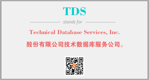 上述内容是“Technical Database Services, Inc.”作为“TDS”的缩写,解释为“股份有限公司技术数据库服务公司。”时的信息,以及英文缩略词TDS所代表的英文单词,其对应的中文拼音、详细解释以及在英文中的流行度和相关分类、应用领域及应用示例等。
