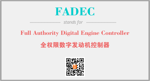 上述内容是“Full Authority Digital Engine Controller”作为“FADEC”的缩写,解释为“全权限数字发动机控制器”时的信息,以及英文缩略词FADEC所代表的英文单词,其对应的中文拼音、详细解释以及在英文中的流行度和相关分类、应用领域及应用示例等。