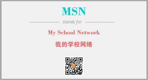 英文缩略词“MSN”经常作为“My School Network”的英文缩写来使用,中文表示:“我的学校网络”。本文将详细介绍英文缩写词MSN所代表英文单词,其对应的中文拼音、详细解释以及在英语中的流行度。此外,还有关于缩略词MSN的分类、应用领域及相关应用示例等。
