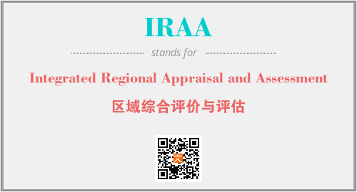 以上为Integrated Regional Appraisal and Assessment英文缩略词IRAA的中文解释,以及该英文缩写在英语的流行度、分类和应用领域方面的信息。