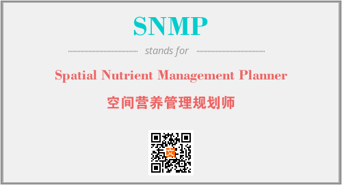 上述内容是“Spatial Nutrient Management Planner”作为“SNMP”的缩写,解释为“空间营养管理规划师”时的信息,以及英文缩略词SNMP所代表的英文单词,其对应的中文拼音、详细解释以及在英文中的流行度和相关分类、应用领域及应用示例等。