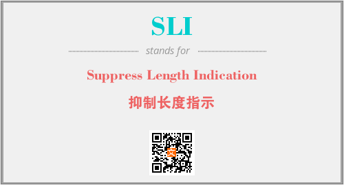 上述内容是“Suppress Length Indication”作为“SLI”的缩写,解释为“抑制长度指示”时的信息,以及英文缩略词SLI所代表的英文单词,其对应的中文拼音、详细解释以及在英文中的流行度和相关分类、应用领域及应用示例等。
