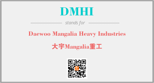 英文缩略词“DMHI”经常作为“Daewoo Mangalia Heavy Industries”的英文缩写来使用,中文表示:“大宇Mangalia重工”。本文将详细介绍英文缩写词DMHI所代表英文单词,其对应的中文拼音、详细解释以及在英语中的流行度。此外,还有关于缩略词DMHI的分类、应用领域及相关应用示例等。