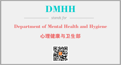 上述内容是“Department of Mental Health and Hygiene”作为“DMHH”的缩写,解释为“心理健康与卫生部”时的信息,以及英文缩略词DMHH所代表的英文单词,其对应的中文拼音、详细解释以及在英文中的流行度和相关分类、应用领域及应用示例等。