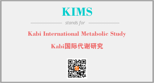 上述内容是“Kabi International Metabolic Study”作为“KIMS”的缩写,解释为“Kabi国际代谢研究”时的信息,以及英文缩略词KIMS所代表的英文单词,其对应的中文拼音、详细解释以及在英文中的流行度和相关分类、应用领域及应用示例等。