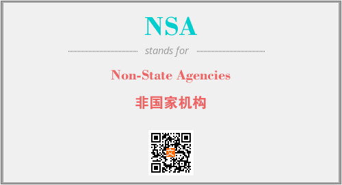 英文缩略词“NSA”经常作为“Non-State Agencies”的英文缩写来使用,中文表示:“非国家机构”。本文将详细介绍英文缩写词NSA所代表英文单词,其对应的中文拼音、详细解释以及在英语中的流行度。此外,还有关于缩略词NSA的分类、应用领域及相关应用示例等。