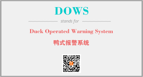 上述内容是“Duck Operated Warning System”作为“DOWS”的缩写,解释为“鸭式报警系统”时的信息,以及英文缩略词DOWS所代表的英文单词,其对应的中文拼音、详细解释以及在英文中的流行度和相关分类、应用领域及应用示例等。