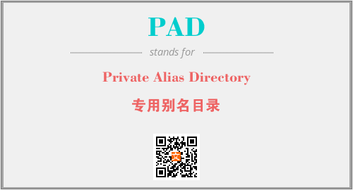 上述内容是“Private Alias Directory”作为“PAD”的缩写,解释为“专用别名目录”时的信息,以及英文缩略词PAD所代表的英文单词,其对应的中文拼音、详细解释以及在英文中的流行度和相关分类、应用领域及应用示例等。