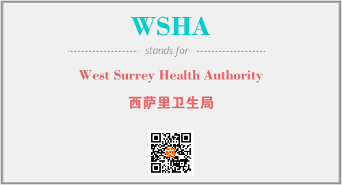 上述内容是“West Surrey Health Authority”作为“WSHA”的缩写,解释为“西萨里卫生局”时的信息,以及英文缩略词WSHA所代表的英文单词,其对应的中文拼音、详细解释以及在英文中的流行度和相关分类、应用领域及应用示例等。