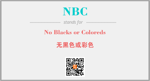英文缩略词“NBC”经常作为“No Blacks or Coloreds”的英文缩写来使用,中文表示:“无黑色或彩色”。本文将详细介绍英文缩写词NBC所代表英文单词,其对应的中文拼音、详细解释以及在英语中的流行度。此外,还有关于缩略词NBC的分类、应用领域及相关应用示例等。
