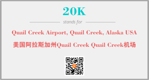 上述内容是“Quail Creek Airport, Quail Creek, Alaska USA”作为“20K”的缩写,解释为“美国阿拉斯加州Quail Creek Quail Creek机场”时的信息,以及英文缩略词20K所代表的英文单词,其对应的中文拼音、详细解释以及在英文中的流行度和相关分类、应用领域及应用示例等。