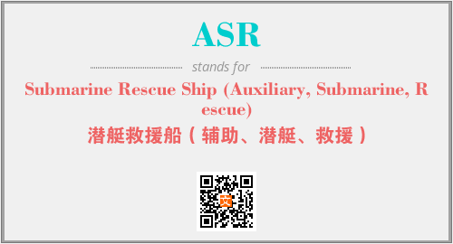 上述内容是“Submarine Rescue Ship (Auxiliary, Submarine, Rescue)”作为“ASR”的缩写,解释为“潜艇救援船(辅助、潜艇、救援)”时的信息,以及英文缩略词ASR所代表的英文单词,其对应的中文拼音、详细解释以及在英文中的流行度和相关分类、应用领域及应用示例等。