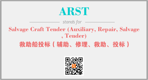 上述内容是“Salvage Craft Tender (Auxiliary, Repair, Salvage, Tender)”作为“ARST”的缩写,解释为“救助船投标(辅助、修理、救助、投标)”时的信息,以及英文缩略词ARST所代表的英文单词,其对应的中文拼音、详细解释以及在英文中的流行度和相关分类、应用领域及应用示例等。
