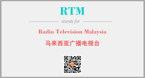 上述内容是“Radio Television Malaysia”作为“RTM”的缩写,解释为“马来西亚广播电视台”时的信息,以及英文缩略词RTM所代表的英文单词,其对应的中文拼音、详细解释以及在英文中的流行度和相关分类、应用领域及应用示例等。
