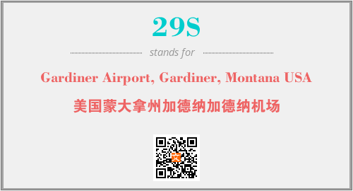 上述内容是“Gardiner Airport, Gardiner, Montana USA”作为“29S”的缩写,解释为“美国蒙大拿州加德纳加德纳机场”时的信息,以及英文缩略词29S所代表的英文单词,其对应的中文拼音、详细解释以及在英文中的流行度和相关分类、应用领域及应用示例等。