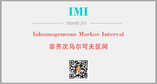 上述内容是“Inhomogeneous Markov Interval”作为“IMI”的缩写,解释为“非齐次马尔可夫区间”时的信息,以及英文缩略词IMI所代表的英文单词,其对应的中文拼音、详细解释以及在英文中的流行度和相关分类、应用领域及应用示例等。