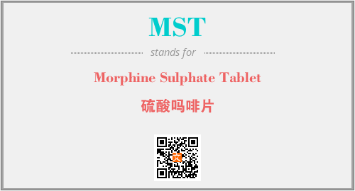 英文缩略词“MST”经常作为“Morphine Sulphate Tablet”的英文缩写来使用,中文表示:“硫酸吗啡片”。本文将详细介绍英文缩写词MST所代表英文单词,其对应的中文拼音、详细解释以及在英语中的流行度。此外,还有关于缩略词MST的分类、应用领域及相关应用示例等。