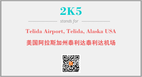 上述内容是“Telida Airport, Telida, Alaska USA”作为“2K5”的缩写,解释为“美国阿拉斯加州泰利达泰利达机场”时的信息,以及英文缩略词2K5所代表的英文单词,其对应的中文拼音、详细解释以及在英文中的流行度和相关分类、应用领域及应用示例等。