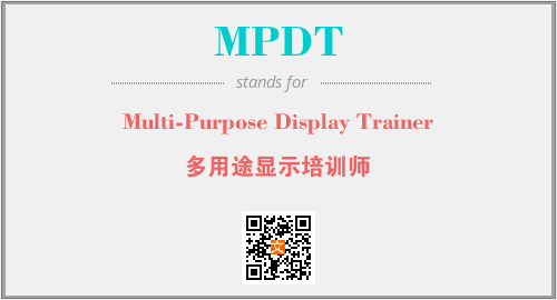 英文缩略词“MPDT”经常作为“Multi-Purpose Display Trainer”的英文缩写来使用,中文表示:“多用途显示培训师”。本文将详细介绍英文缩写词MPDT所代表英文单词,其对应的中文拼音、详细解释以及在英语中的流行度。此外,还有关于缩略词MPDT的分类、应用领域及相关应用示例等。