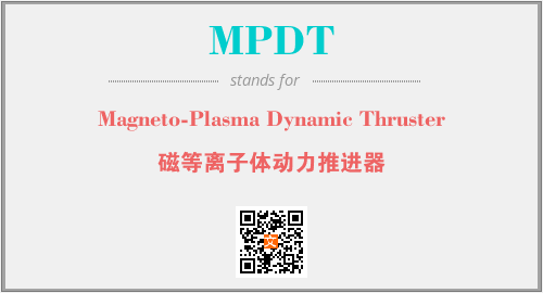 上述内容是“Magneto-Plasma Dynamic Thruster”作为“MPDT”的缩写,解释为“磁等离子体动力推进器”时的信息,以及英文缩略词MPDT所代表的英文单词,其对应的中文拼音、详细解释以及在英文中的流行度和相关分类、应用领域及应用示例等。