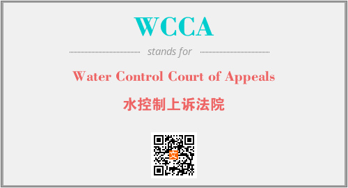 英文缩略词“WCCA”经常作为“Water Control Court of Appeals”的英文缩写来使用,中文表示:“水控制上诉法院”。本文将详细介绍英文缩写词WCCA所代表英文单词,其对应的中文拼音、详细解释以及在英语中的流行度。此外,还有关于缩略词WCCA的分类、应用领域及相关应用示例等。