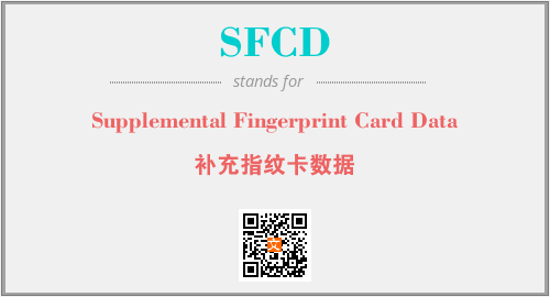上述内容是“Supplemental Fingerprint Card Data”作为“SFCD”的缩写,解释为“补充指纹卡数据”时的信息,以及英文缩略词SFCD所代表的英文单词,其对应的中文拼音、详细解释以及在英文中的流行度和相关分类、应用领域及应用示例等。