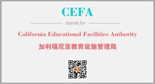 英文缩略词“CEFA”经常作为“California Educational Facilities Authority”的英文缩写来使用,中文表示:“加利福尼亚教育设施管理局”。本文将详细介绍英文缩写词CEFA所代表英文单词,其对应的中文拼音、详细解释以及在英语中的流行度。此外,还有关于缩略词CEFA的分类、应用领域及相关应用示例等。