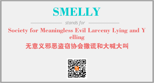 以上为Society for Meaningless Evil Larceny Lying and Yelling英文缩略词SMELLY的中文解释,以及该英文缩写在英语的流行度、分类和应用领域方面的信息。