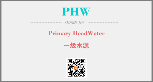 英文缩略词“PHW”经常作为“Primary HeadWater”的英文缩写来使用,中文表示:“一级水源”。本文将详细介绍英文缩写词PHW所代表英文单词,其对应的中文拼音、详细解释以及在英语中的流行度。此外,还有关于缩略词PHW的分类、应用领域及相关应用示例等。