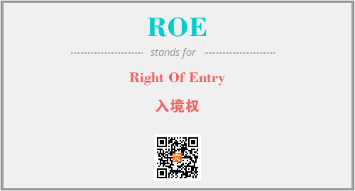 英文缩略词“ROE”经常作为“Right Of Entry”的英文缩写来使用,中文表示:“入境权”。本文将详细介绍英文缩写词ROE所代表英文单词,其对应的中文拼音、详细解释以及在英语中的流行度。此外,还有关于缩略词ROE的分类、应用领域及相关应用示例等。