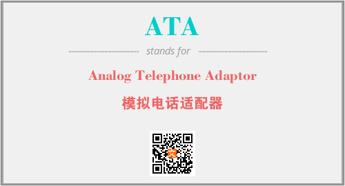英文缩略词“ATA”经常作为“Analog Telephone Adaptor”的英文缩写来使用,中文表示:“模拟电话适配器”。本文将详细介绍英文缩写词ATA所代表英文单词,其对应的中文拼音、详细解释以及在英语中的流行度。此外,还有关于缩略词ATA的分类、应用领域及相关应用示例等。