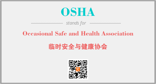 上述内容是“Occasional Safe and Health Association”作为“OSHA”的缩写,解释为“临时安全与健康协会”时的信息,以及英文缩略词OSHA所代表的英文单词,其对应的中文拼音、详细解释以及在英文中的流行度和相关分类、应用领域及应用示例等。