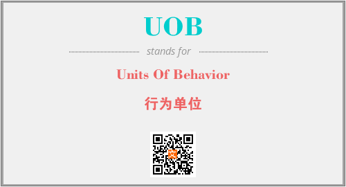 上述内容是“Units Of Behavior”作为“UOB”的缩写,解释为“行为单位”时的信息,以及英文缩略词UOB所代表的英文单词,其对应的中文拼音、详细解释以及在英文中的流行度和相关分类、应用领域及应用示例等。