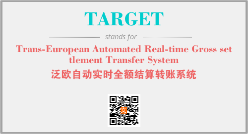 英文缩略词“TARGET”经常作为“Trans-European Automated Real-time Gross settlement Transfer System”的英文缩写来使用,中文表示:“泛欧自动实时全额结算转账系统”。本文将详细介绍英文缩写词TARGET所代表英文单词,其对应的中文拼音、详细解释以及在英语中的流行度。此外,还有关于缩略词TARGET的分类、应用领域及相关应用示例等。