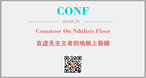 上述内容是“Comatose On Nihilists Floor”作为“CONF”的缩写,解释为“在虚无主义者的地板上昏睡”时的信息,以及英文缩略词CONF所代表的英文单词,其对应的中文拼音、详细解释以及在英文中的流行度和相关分类、应用领域及应用示例等。