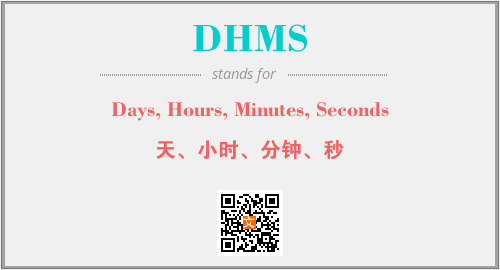 上述内容是“Days, Hours, Minutes, Seconds”作为“DHMS”的缩写,解释为“天、小时、分钟、秒”时的信息,以及英文缩略词DHMS所代表的英文单词,其对应的中文拼音、详细解释以及在英文中的流行度和相关分类、应用领域及应用示例等。