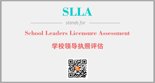 英文缩略词“SLLA”经常作为“School Leaders Licensure Assessment”的英文缩写来使用,中文表示:“学校领导执照评估”。本文将详细介绍英文缩写词SLLA所代表英文单词,其对应的中文拼音、详细解释以及在英语中的流行度。此外,还有关于缩略词SLLA的分类、应用领域及相关应用示例等。
