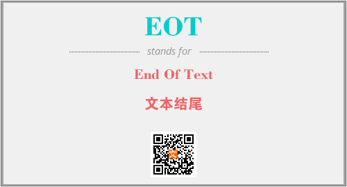 英文缩略词“EOT”经常作为“End Of Text”的英文缩写来使用,中文表示:“文本结尾”。本文将详细介绍英文缩写词EOT所代表英文单词,其对应的中文拼音、详细解释以及在英语中的流行度。此外,还有关于缩略词EOT的分类、应用领域及相关应用示例等。