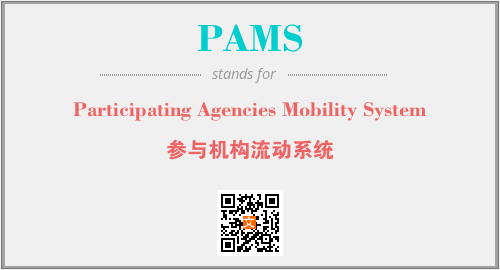 上述内容是“Participating Agencies Mobility System”作为“PAMS”的缩写,解释为“参与机构流动系统”时的信息,以及英文缩略词PAMS所代表的英文单词,其对应的中文拼音、详细解释以及在英文中的流行度和相关分类、应用领域及应用示例等。