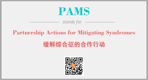 上述内容是“Partnership Actions for Mitigating Syndromes”作为“PAMS”的缩写,解释为“缓解综合征的合作行动”时的信息,以及英文缩略词PAMS所代表的英文单词,其对应的中文拼音、详细解释以及在英文中的流行度和相关分类、应用领域及应用示例等。