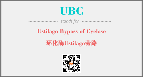 英文缩略词“UBC”经常作为“Ustilago Bypass of Cyclase”的英文缩写来使用,中文表示:“环化酶Ustilago旁路”。本文将详细介绍英文缩写词UBC所代表英文单词,其对应的中文拼音、详细解释以及在英语中的流行度。此外,还有关于缩略词UBC的分类、应用领域及相关应用示例等。