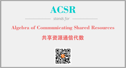 上述内容是“Algebra of Communicating Shared Resources”作为“ACSR”的缩写,解释为“共享资源通信代数”时的信息,以及英文缩略词ACSR所代表的英文单词,其对应的中文拼音、详细解释以及在英文中的流行度和相关分类、应用领域及应用示例等。