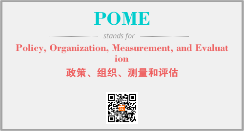 上述内容是“Policy, Organization, Measurement, and Evaluation”作为“POME”的缩写,解释为“政策、组织、测量和评估”时的信息,以及英文缩略词POME所代表的英文单词,其对应的中文拼音、详细解释以及在英文中的流行度和相关分类、应用领域及应用示例等。