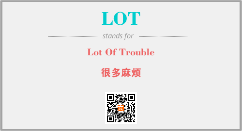 以上为Lot Of Trouble英文缩略词LOT的中文解释,以及该英文缩写在英语的流行度、分类和应用领域方面的信息。