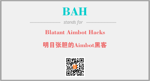 英文缩略词“BAH”经常作为“Blatant Aimbot Hacks”的英文缩写来使用,中文表示:“明目张胆的Aimbot黑客”。本文将详细介绍英文缩写词BAH所代表英文单词,其对应的中文拼音、详细解释以及在英语中的流行度。此外,还有关于缩略词BAH的分类、应用领域及相关应用示例等。
