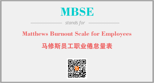 以上为Matthews Burnout Scale for Employees英文缩略词MBSE的中文解释,以及该英文缩写在英语的流行度、分类和应用领域方面的信息。