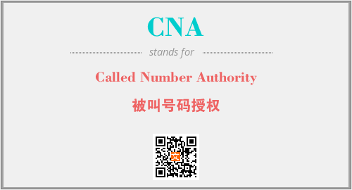英文缩略词“CNA”经常作为“Called Number Authority”的英文缩写来使用,中文表示:“被叫号码授权”。本文将详细介绍英文缩写词CNA所代表英文单词,其对应的中文拼音、详细解释以及在英语中的流行度。此外,还有关于缩略词CNA的分类、应用领域及相关应用示例等。