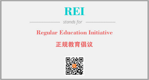 英文缩略词“REI”经常作为“Regular Education Initiative”的英文缩写来使用,中文表示:“正规教育倡议”。本文将详细介绍英文缩写词REI所代表英文单词,其对应的中文拼音、详细解释以及在英语中的流行度。此外,还有关于缩略词REI的分类、应用领域及相关应用示例等。